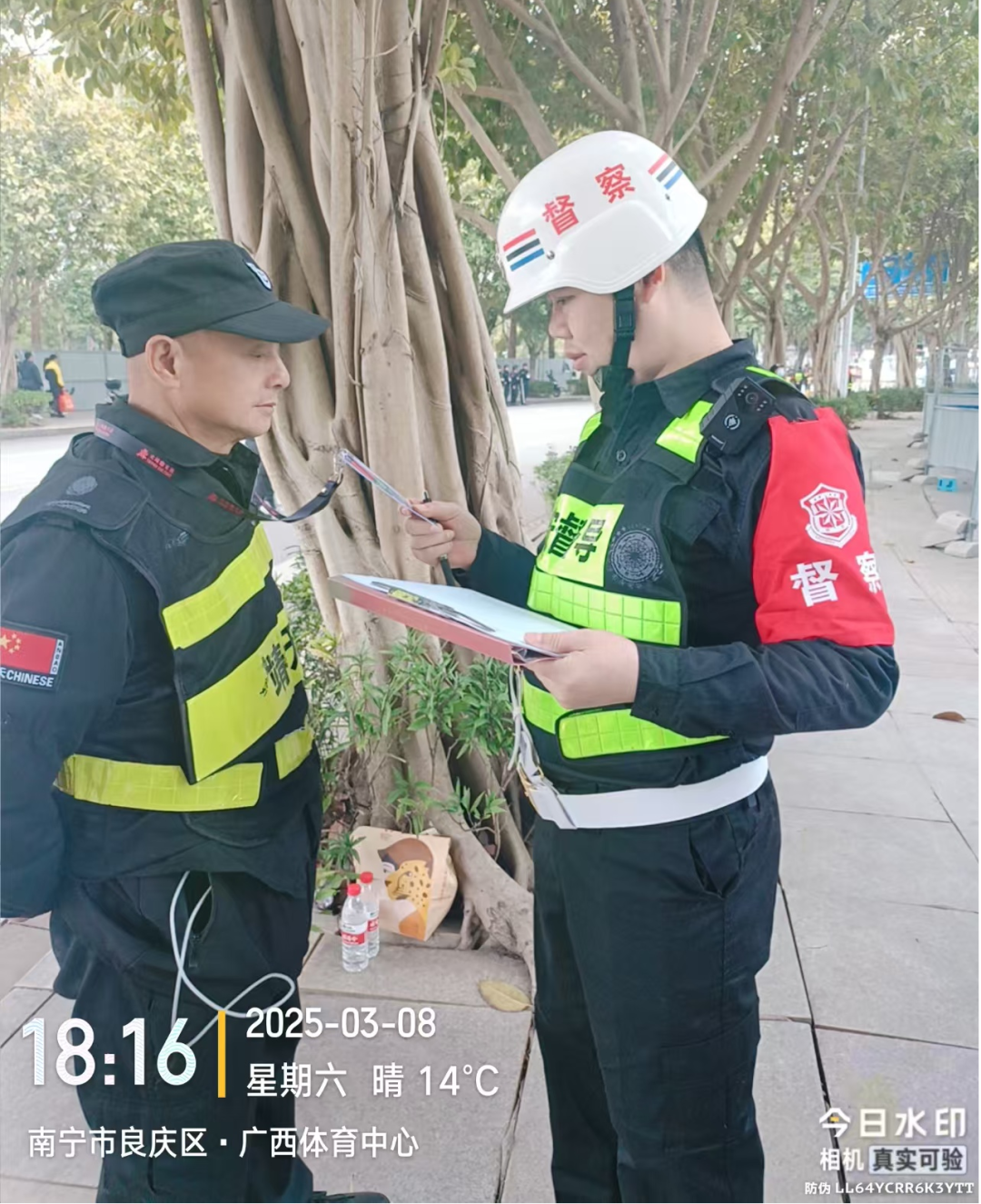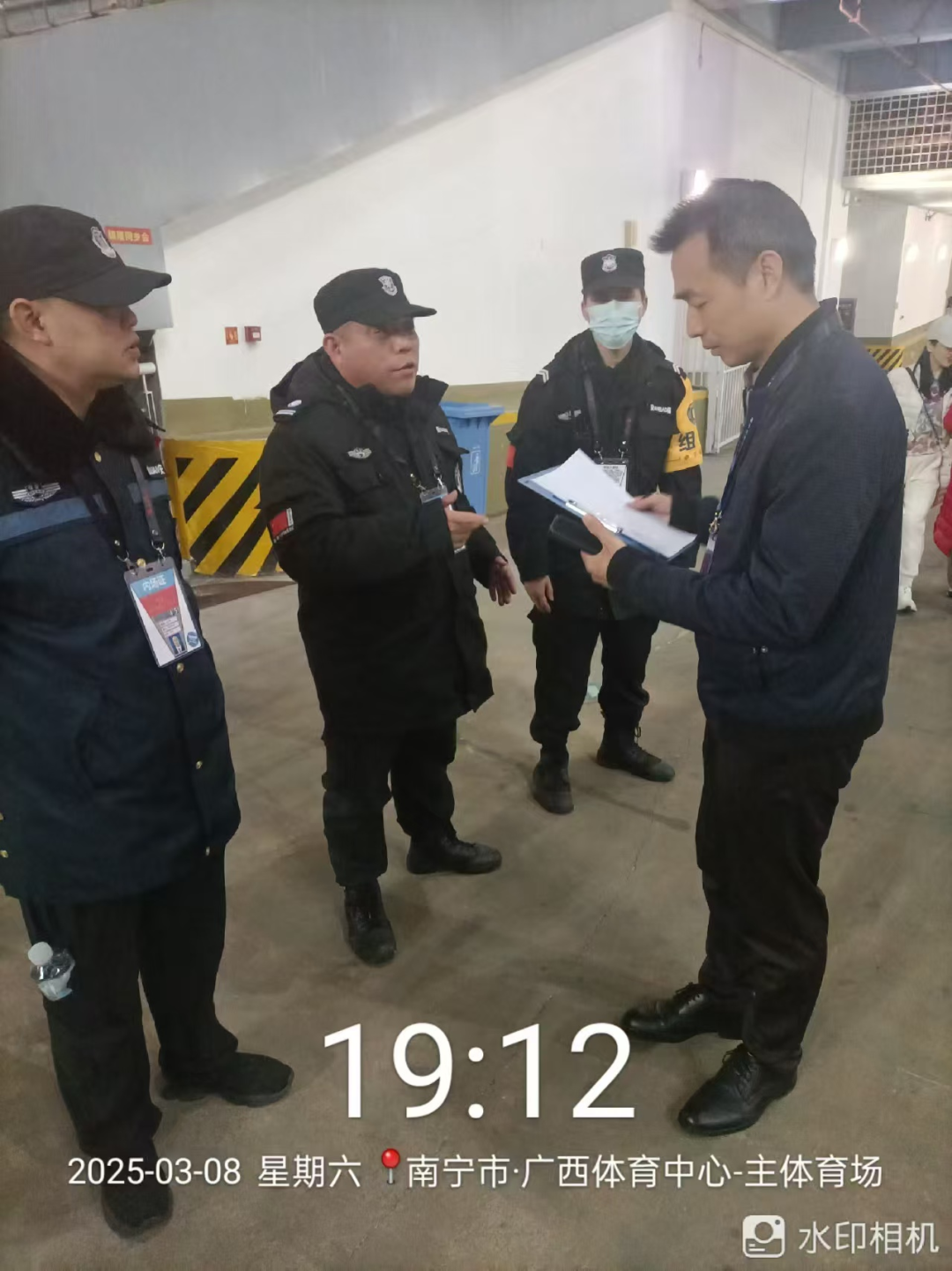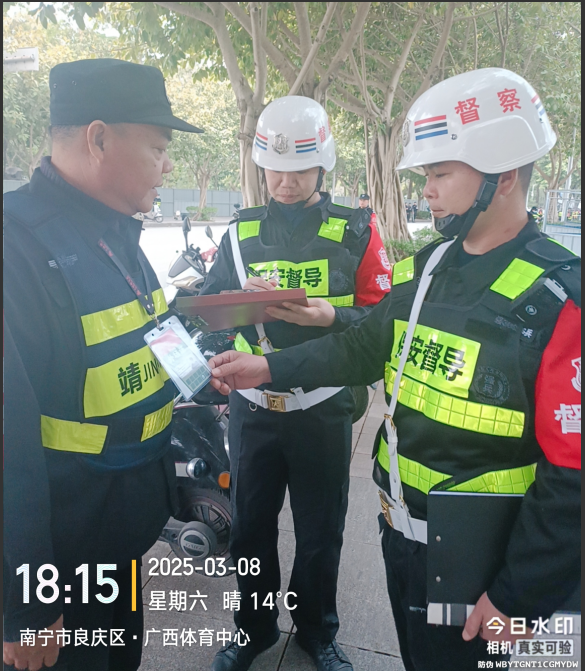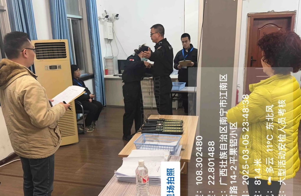 当天,南宁市保安协会贾伟会长在演唱会开始前4个小时,就来到演唱会现场,检查指导安检督查工作,协会秘书长许宏伟带领督查员,分成两组,深入广西体育中心体育场各检票通道,对安检设备运行、安检流程执行、安保人员配置等情况进行了细致检查。在安检设备方面,重点查看了X光机、金属探测器等设备是否正常运行,是否存在故障隐患;安检流程上,督查人员严格监督安检人员是否按照规范操作,动作是否熟练,对观众携带物品进行全面、细致的检查,严格落实公安机关严禁违禁物品进入演出现场,确保活动安全;在安保人员配置方面,重点督察是否按计划规定的人员进行部署,安检员是否经过专业培训、持证上岗,经督查人员认真核查,担任安检的275名队员,均持证上岗,能熟练操作运用安检设备、服务用语规范、安检员业务水平和服务能力能满足活动需求;对担负外围警戒与看台秩序引导的队员进行督查,安保队员任务清楚,职责明确,服务态度较好。