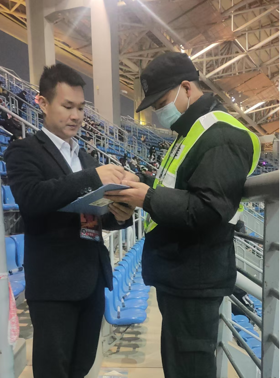 此外,督查小组还与现场安保负责人就安保工作方案、应急预案等进行了交流探讨,要求进一步强化安全意识,严格落实各项安保措施,确保演唱会期间不发生任何安全事故。同时,针对现场发现的少数队员着装不够整齐、用语还不够规范、个别人员警惕性不高、做与执勤无关的事等问题,督查组当场指出并纠正。特别是针对观众入场高峰期,与责任方进行了沟通,提醒相关责任人和现场指挥员,要及时掌握现场观众动态,做好宣传与疏导,严格把控,既要保证速度,也要确保质量,要把应急预案制定充分合理,符合实际,一旦发生意外事件,能有效处置,确保不发生安全事故。