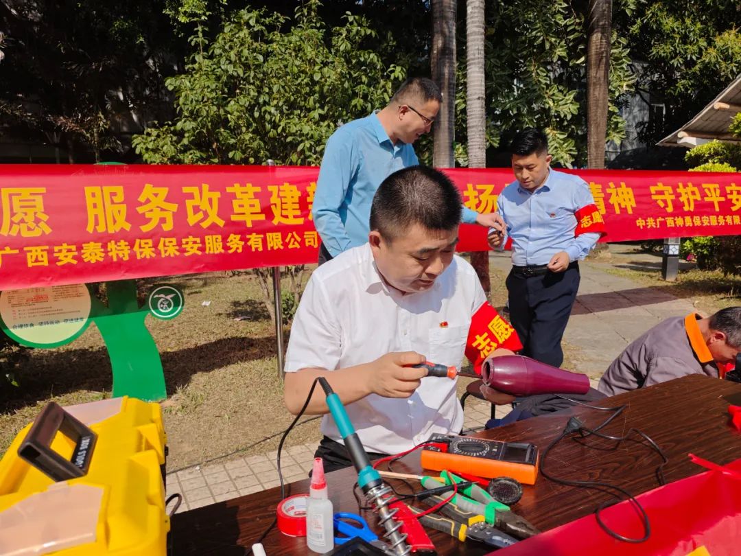 活动现场,志愿者们早早到达指定位置,迅速搭建起服务站点,各项服务有序展开。家电维修区域,维修人员耐心细致地检查每一件送来的家电,熟练地修理着各类故障。电视机、电风扇等小家电,都在他们的巧手下“重获新生”。居民们纷纷竖起大拇指,称赞志愿者们技术精湛,解决了他们日常生活中的大难题。